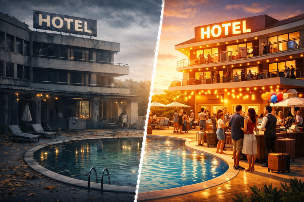 Organizamos a operação do hotel, simplificamos processos e reduzimos custos desnecessários.